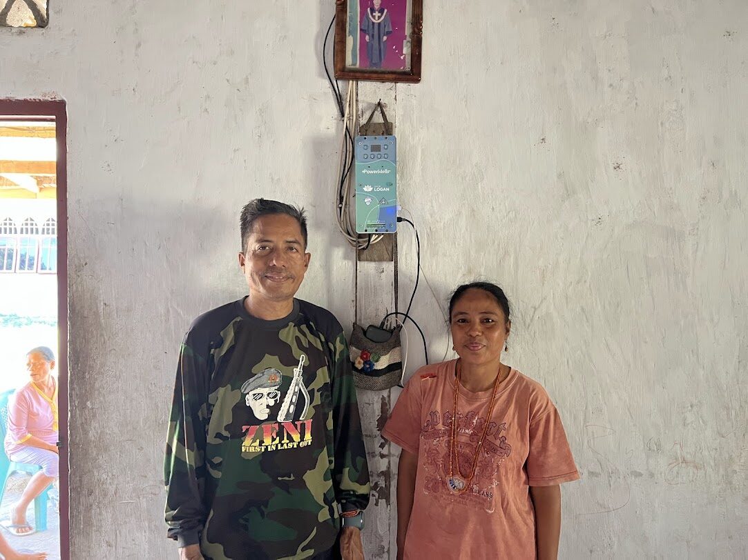 After a wonderful visit with Miss Rose, we continued down the road to another home powered by solar. We were greeted by Pastor Ones H. Windy and his wife Maria K. Aji, who have been using their powerwell unit for over two years now. Before, they relied on a generator, but with gasoline costing 50,000 rupiah per liter, they could only afford to use it in emergencies. Now, they are able to pay 50,000 rupiah a month for consistent electricity, with a maintenance guarantee from Sumba Sustainable Solutions. The change has been profound: the family can gather on their porch and pray together late into the night, and the children can finish their homework under steady light, free from the constraints of fuel shortages.